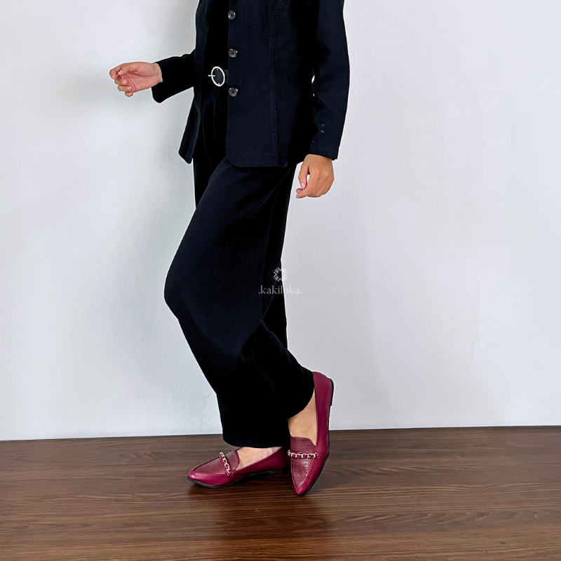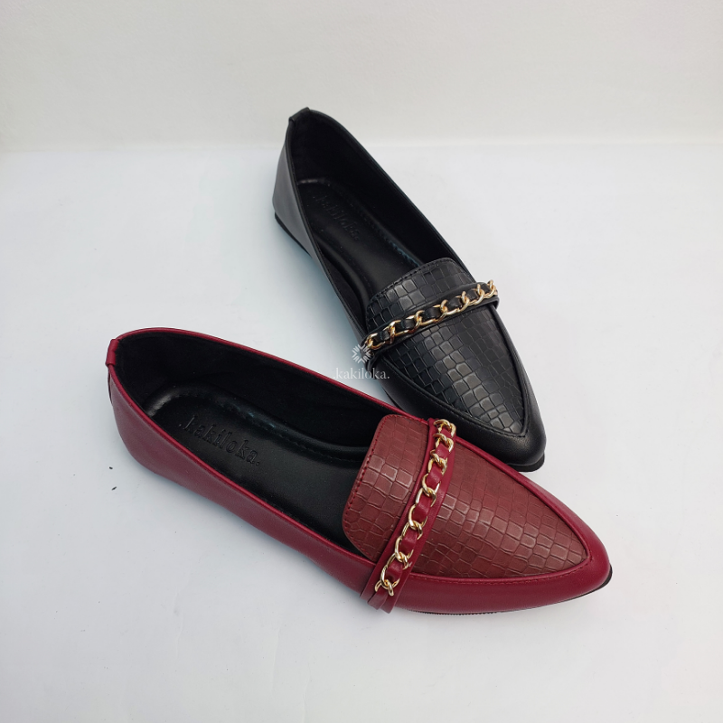 Tampil percaya diri dan nyaman sepanjang hari dengan sepatu flat dari Kakiloka! Desain pointed toe dengan pita cantik dan aksen emas yang menambah kesan mewah dan feminin. Bahan berkualitas, yang lembut dan tahan lama, membuat kaki tetap nyaman meski dipakai lama. Sol yang ringan dan empuk, cocok untuk aktivitas sehari-hari tanpa rasa lelah. Tersedia dalam berbagai ukuran yang pas untuk kaki wanita Indonesia. Kenapa Kakiloka? ✔️ Desain stylish yang bikin kamu standout di mana saja ✔️ Nyaman dipakai seharian, dari kerja sampai hangout ✔️ Harga terjangkau DETAIL PRODUCT : Material : Kulit Sintetis Premium Sol : Non Slip Warna : Tersedia Warna - Black - Maroon Size Chart Kakiloka Uk. 37 : 23 cm Uk. 38 : 23,5 cm Uk. 39 : 24 cm Uk. 40 : 24,5 cm Uk. 41 : 25 cm